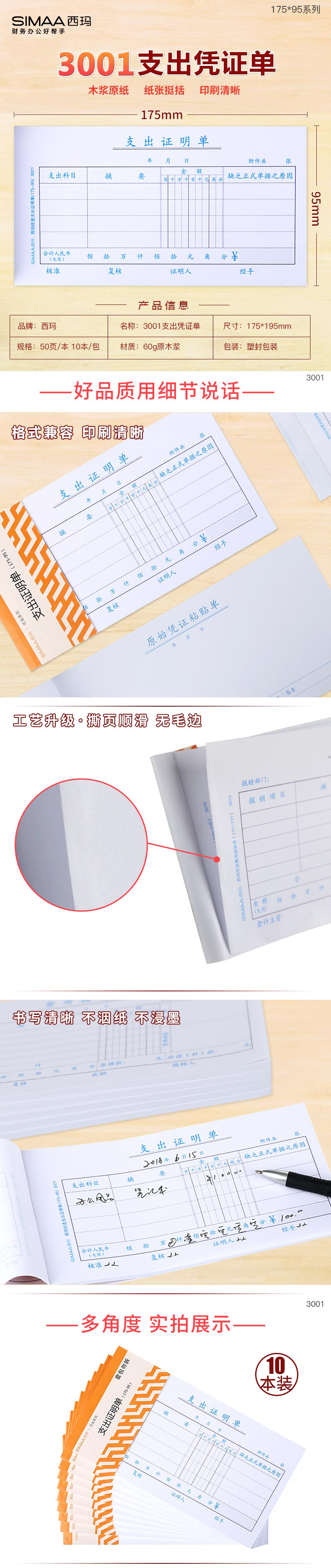 西玛 3001 优选支出证明单 175*95mm 50页/本 10本/包