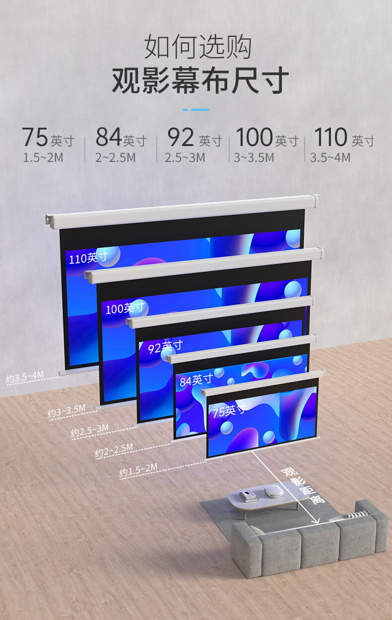 红叶 投影幕120英寸16:9电动遥控玻珠幕投影仪幕布家用投屏布