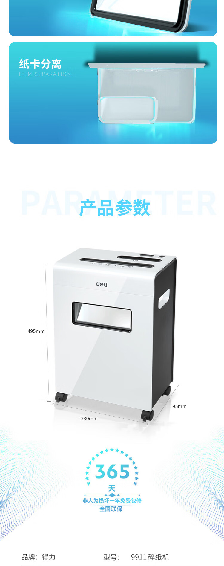 得力 4级保密商用办公碎纸机(单次8张 16L ......