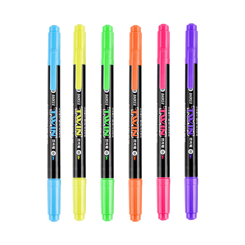 宝克 细杆双头6色荧光笔 水性记号笔 细头1.0mm 粗头 3.0mm 6MP492 多色套装