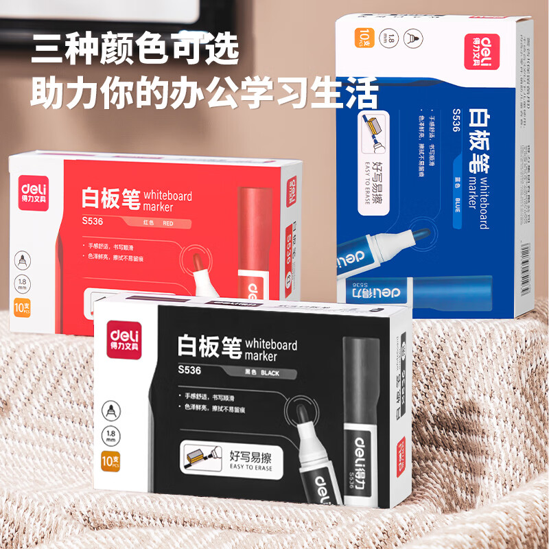 得力 可加墨单头白板笔 可擦易擦 10支/盒 ......