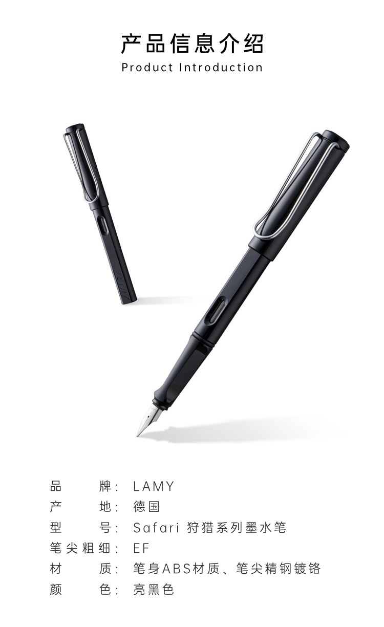 凌美 钢笔签字笔墨水笔Safari狩猎者商务办公礼品笔 亮黑色F尖成