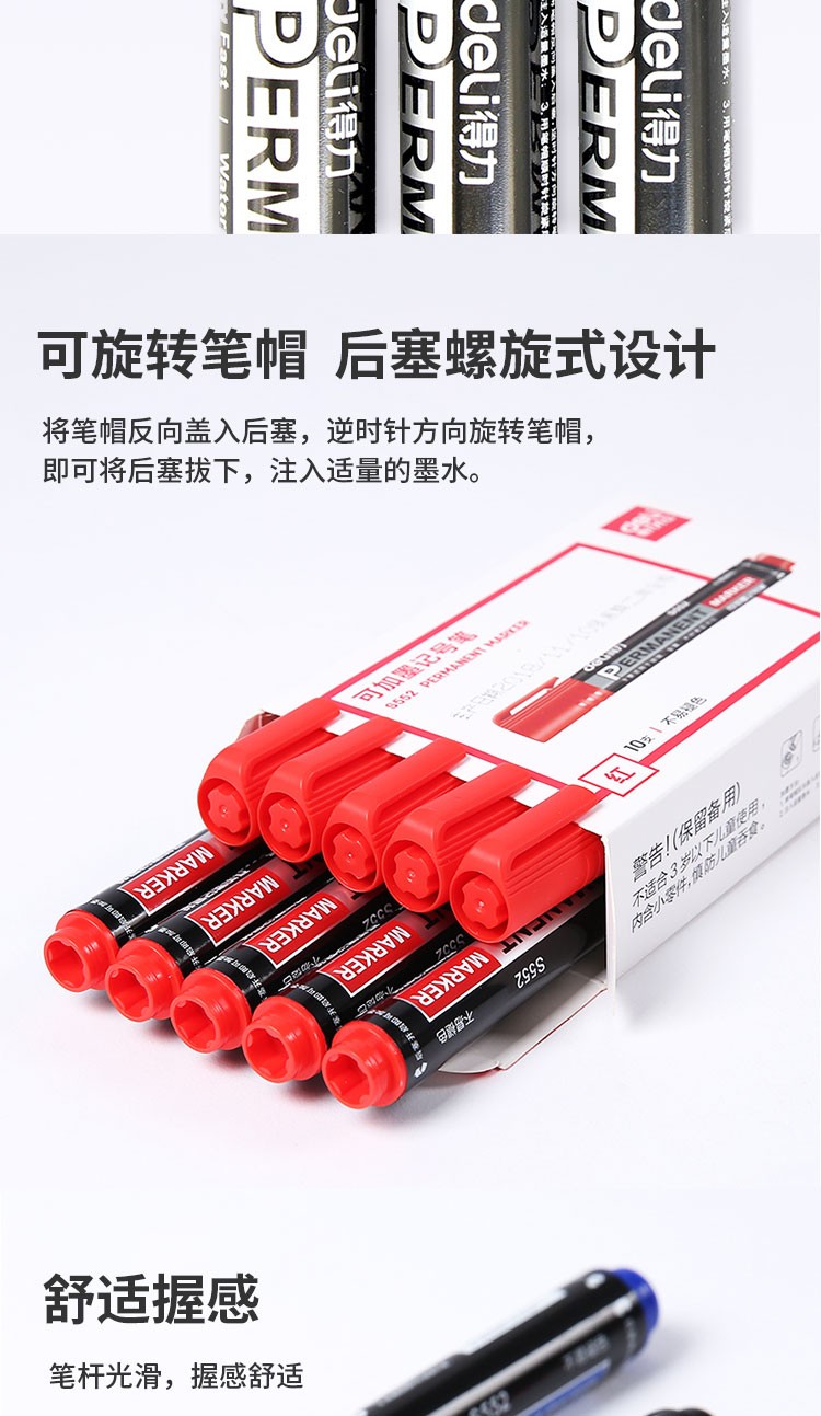 得力 S552 加墨记号笔油性笔大头笔大容量 红色