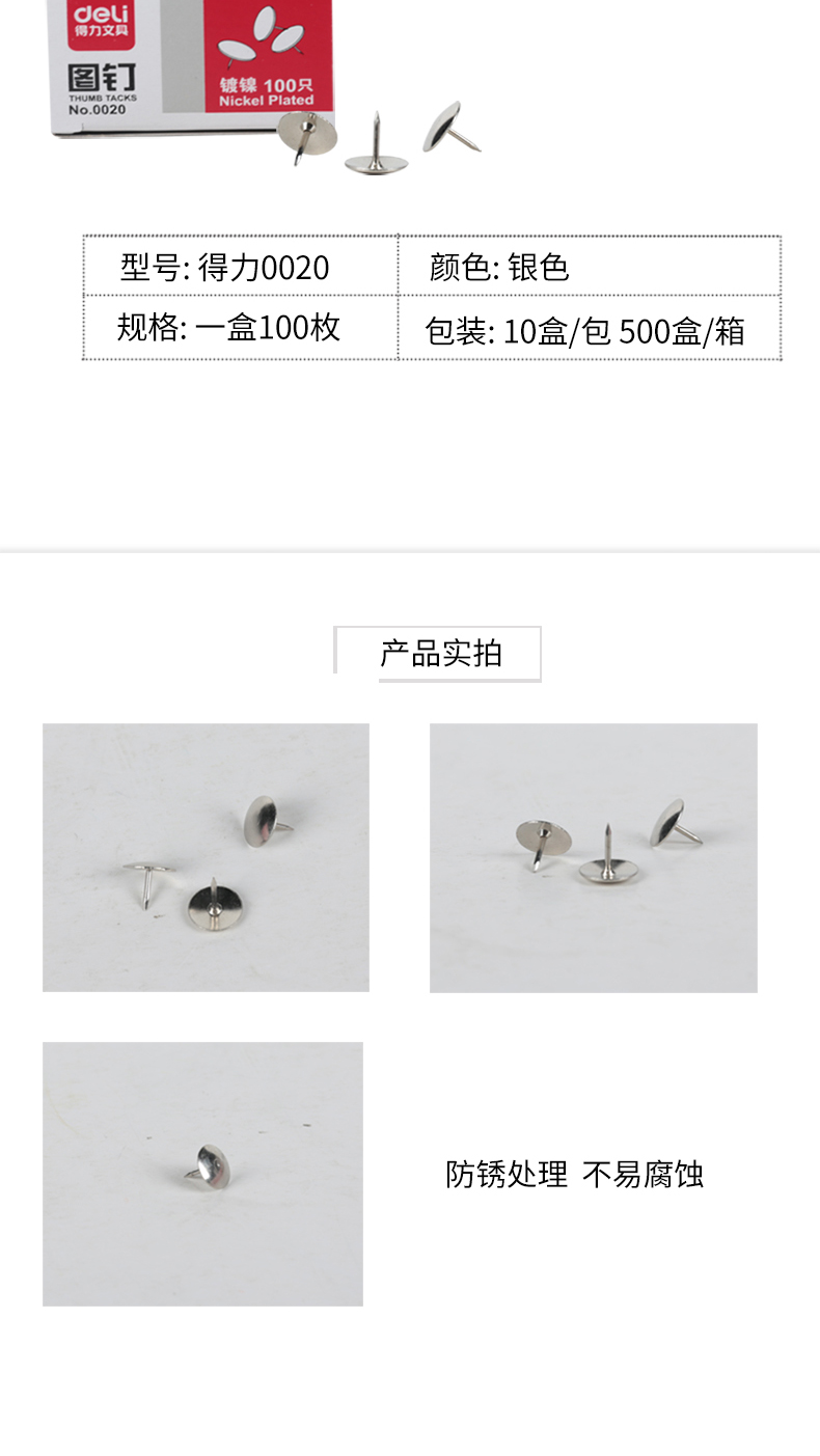 得力 0020 图钉金属大头钉镀镍图钉图画钉
