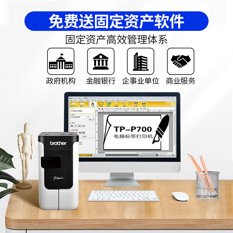 • 兄弟  PT-P700 电脑标签打印机 固定资产标签机 办公用标签机  机房开关网线