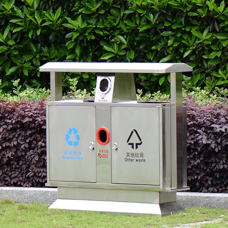 户外垃圾桶不锈钢垃圾箱 室外干湿分类大号 镀锌板