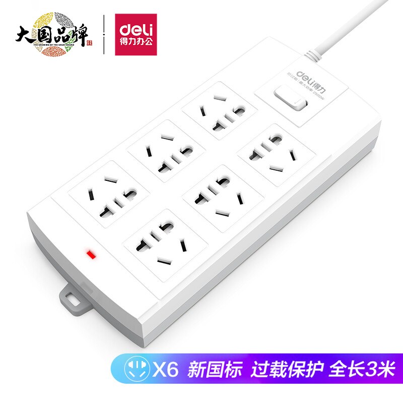 得力3995 6组合孔3米 新国标安全插座 过载保护/儿童保护门 插排/插线板/接线板/排插 总控开关