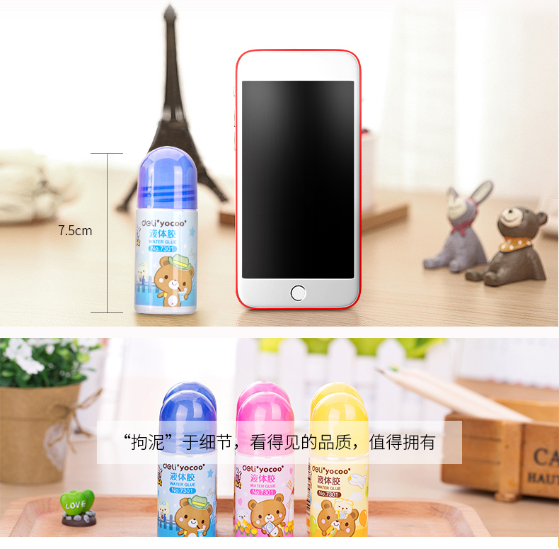 商品名称:得力(deli)学生手工DIY液体胶水 35ML 6只装 颜色随机 办公用品 7301