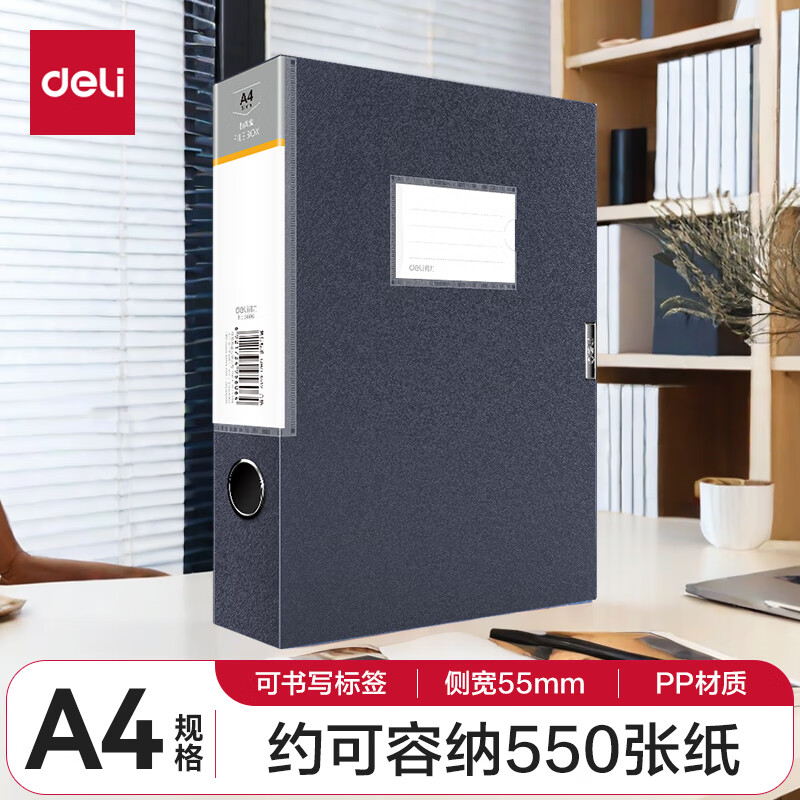 得力 A4 经典款-侧宽40mm 混浆250g牛皮纸档案盒加