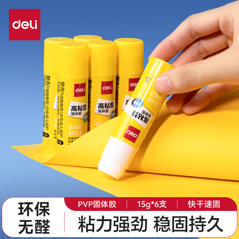 得力 15g高粘度PVP固体胶水 无甲醛快干耐用胶棒 6支装