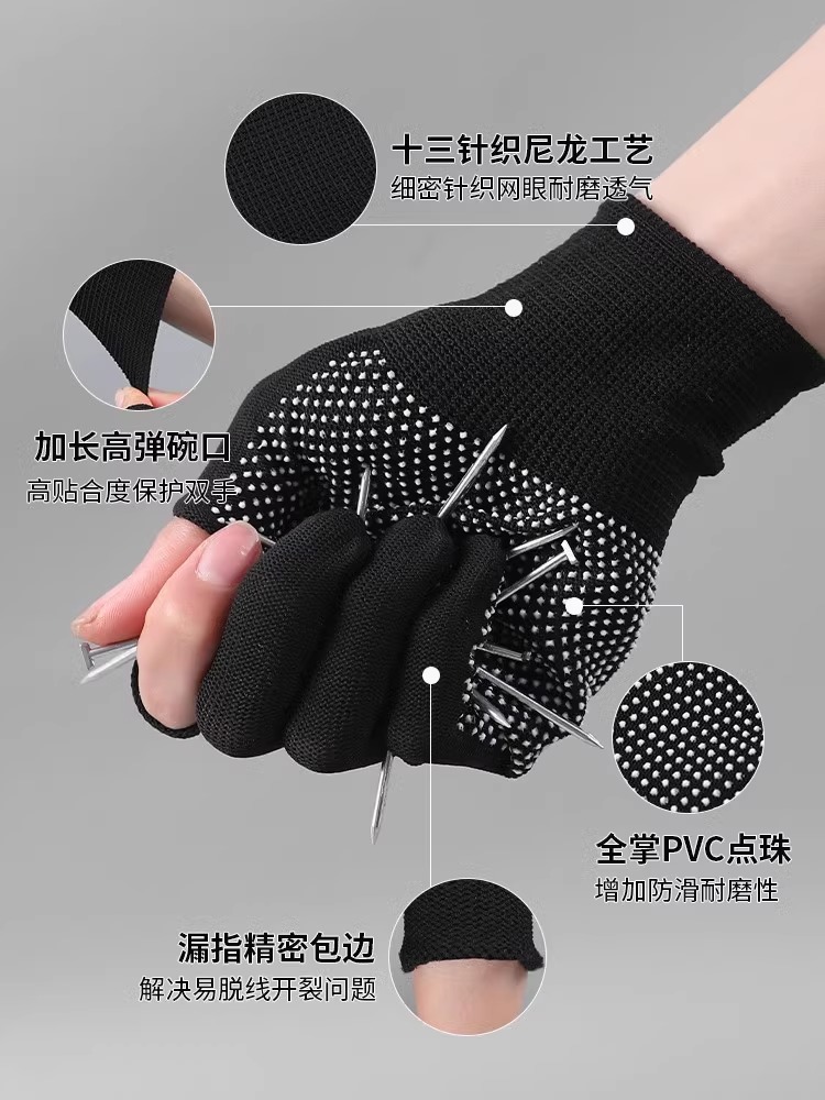 福安特 漏指头耐磨弹力透气无尘劳保触屏 尼龙薄款半指手套