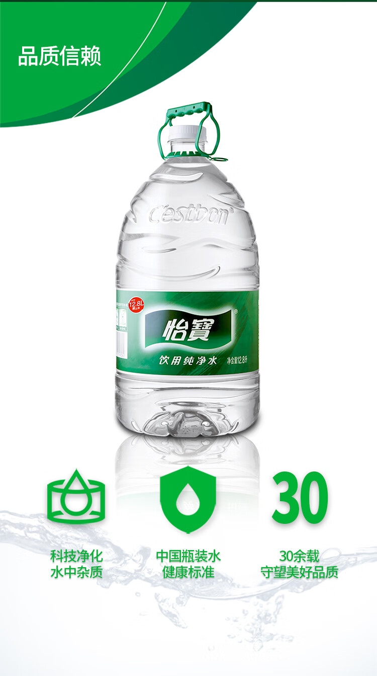 怡宝 12.8L桶 家庭装大桶饮用水纯净水 泡茶用水