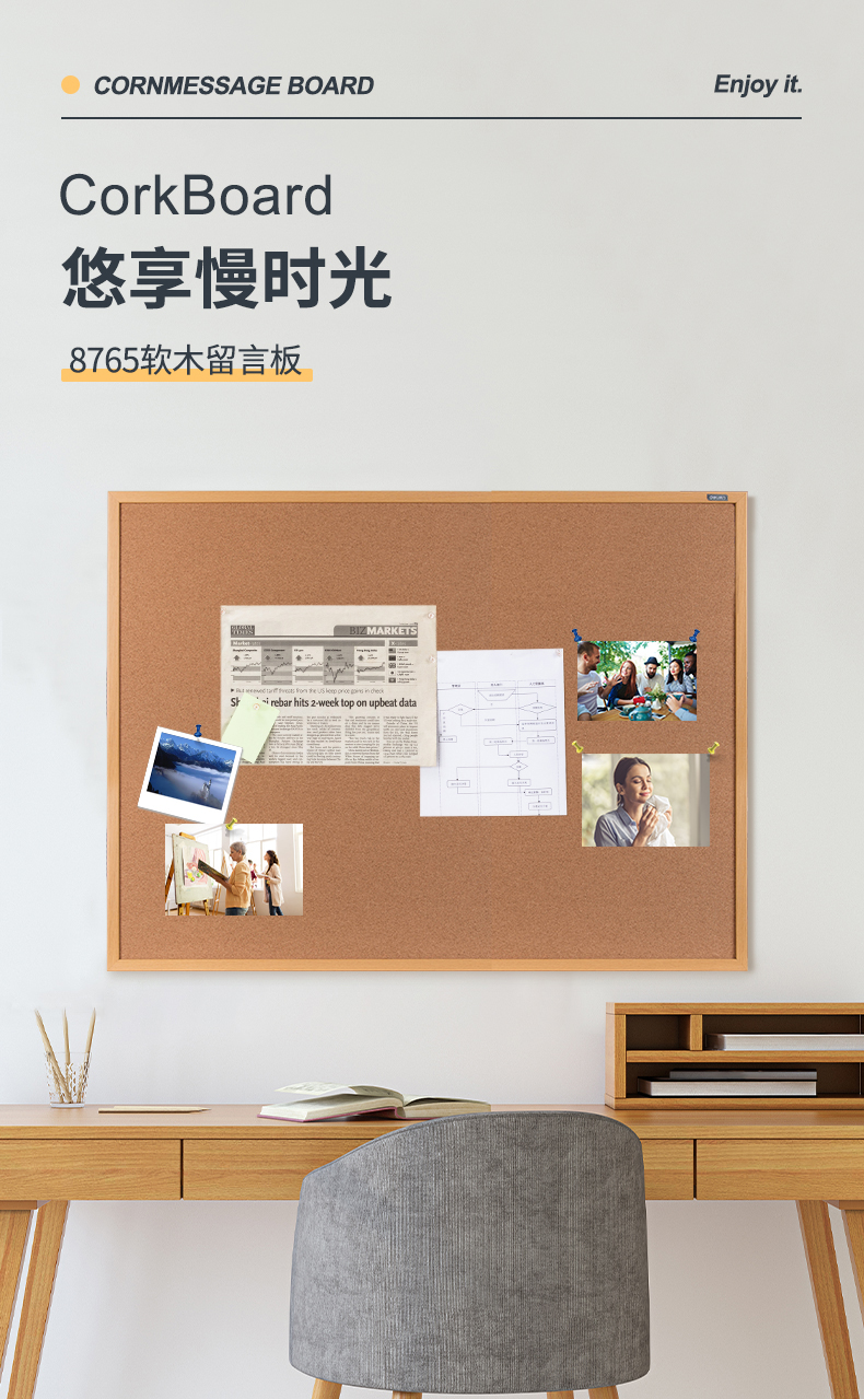 得力 90*120cm软木留言板 白板 家用记事板 可插针照