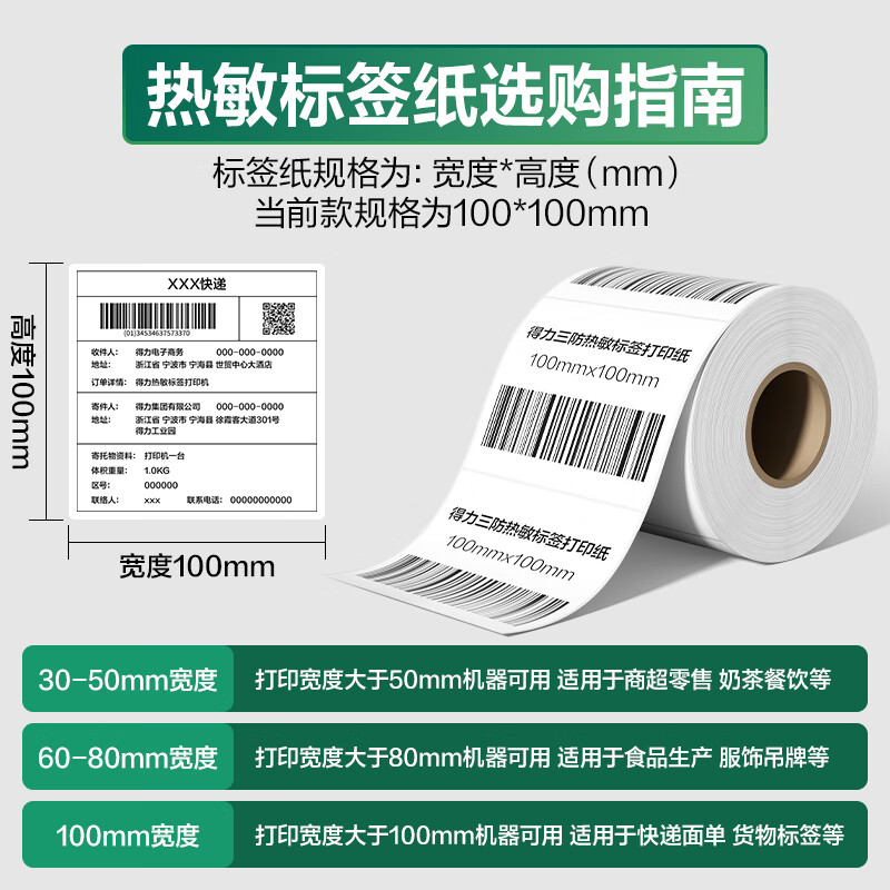 得力 100*100mm*500枚 三防热敏标签打印纸 电