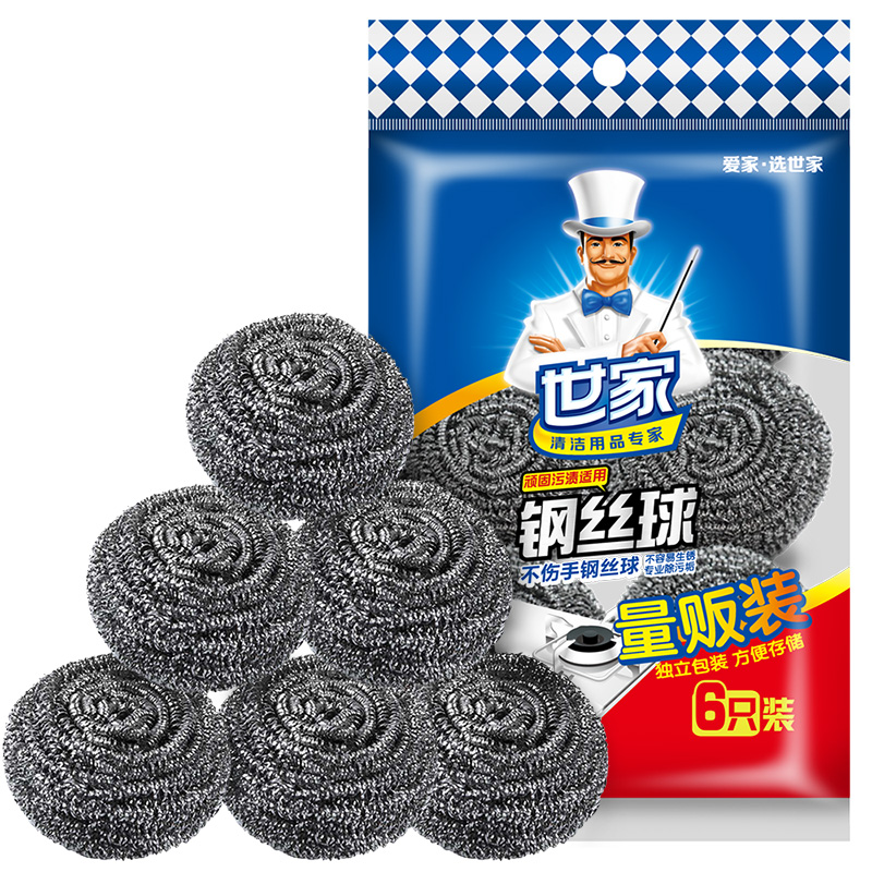 世家 15g*6 清洁球金属钢丝球去油污洗碗球 6只装